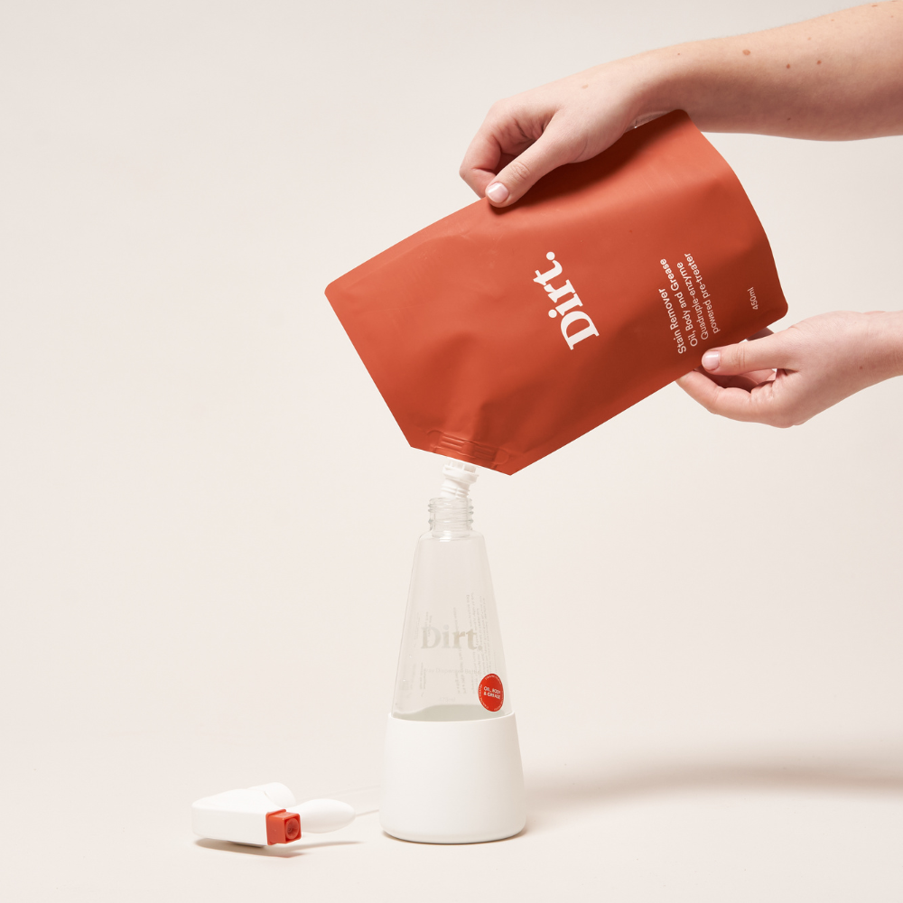 Take stain removal to the next level with our Oil, Body and Grease Stain Remover Starter Pack. Formulated with the expert power of four organic enzymes to deliver a powerful attack on any stain, especially those complex stains that are protein and oil- based. This pack contains a full Dispenser Bottle and a Stain Remover Refill Pack.