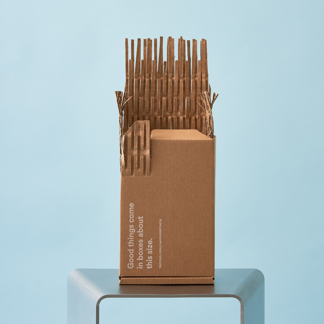 Our boxes, made from at least 65% recycled materials have been engineered to maximise space efficiency in the post. While this is a constant work in progress, we pride ourselves on our ability to iterate quickly as our bundles change in size and make-up.