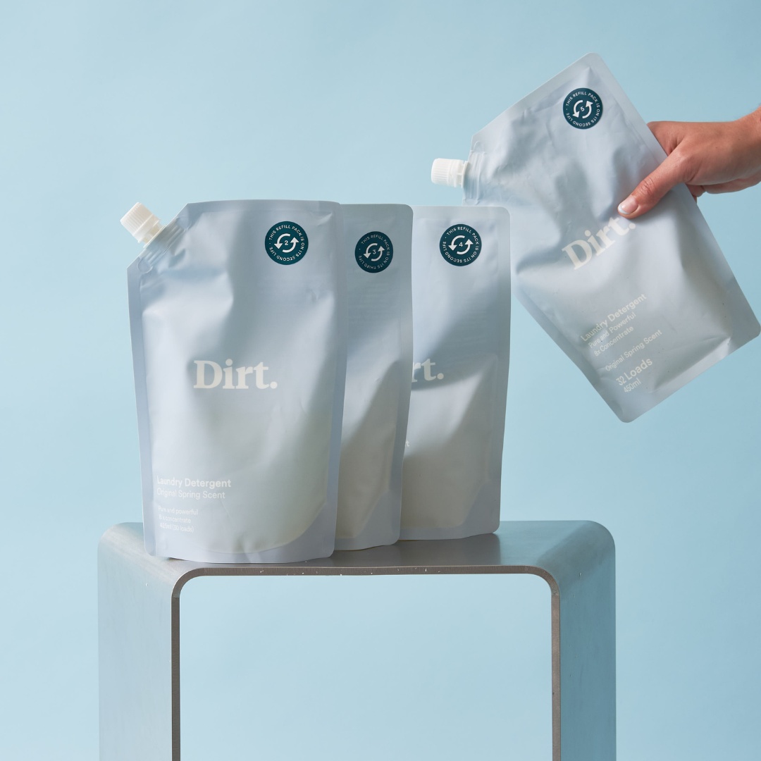 We use refill packs, now made from approximately 40% post industrial waste to replenish your laundry detergent stores. Through life-cycle analysis, we have identified this as the lowest impact solution to keeping your clothes clean.